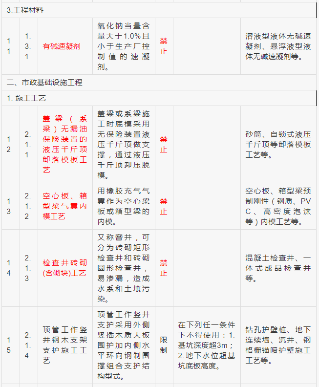 限制使用范圍:限制用于危險(xiǎn)性較大的分部分項(xiàng)工程;自2022年1月1日起全面禁止使用。
