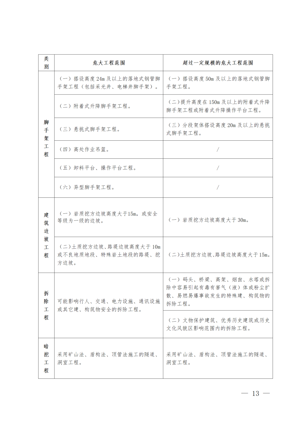 重點檢查深基坑、高大模板、起重吊裝及起重機械安裝拆卸工程、腳手架工程、隧道工程等危大工程施工及臨時用電、消防安全情況,有限空間作業(yè)、高處作業(yè)和臨邊洞口安全防護情況,人員持證上崗情況等。